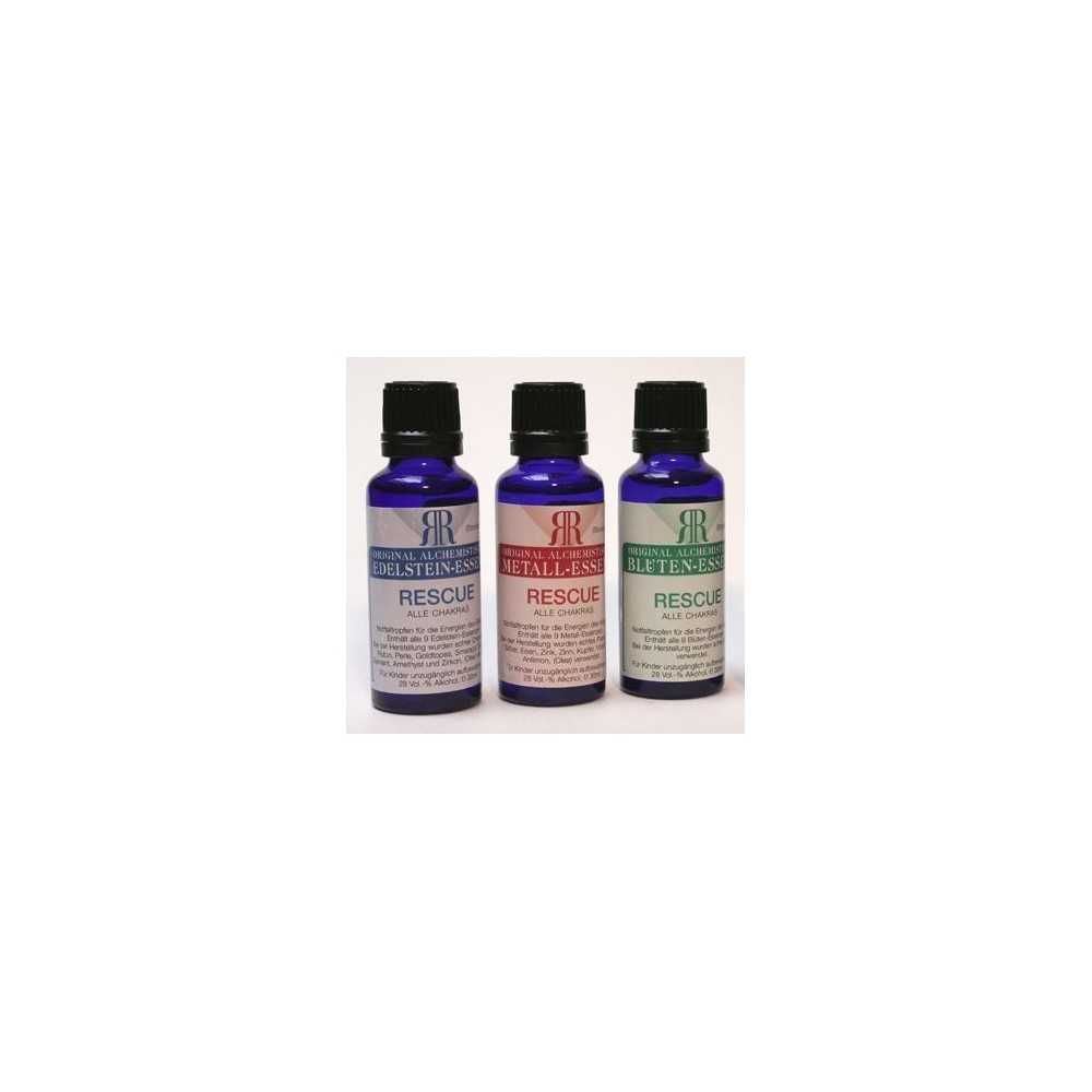Das alchemistische Edelstein-Rescue ist das klassische Rescue im Ayurveda. Es besteht aus allen seinen Hauptheilsteinen (Zirkon, Amethyst, Diamant, Saphir, Smaragd, Goldtopas (Edeltopas), Perle, Rubin und Chrysoberyll). Im Ayurveda gelten die alchemistischen Edelstein-Essenzen als die "Medizin der Maharadschas". Nach den Lehren der Alchemie enthalten sie die Kraft von Sonne, Mond und Planeten und wurden als Mittel zur Bewusstseinsentwicklung eingesetzt. Tatsächlich hat dieses Rescue die stärkste energetisch-geistig harmonisierende und ausrichtend-fokussierende Kraft der vier Rescues. (Bei akuten Problemen stündlich 10-30 Tropfen; bei „chronischen“ Störungen täglich 1–3mal 5-10 Tropfen.)