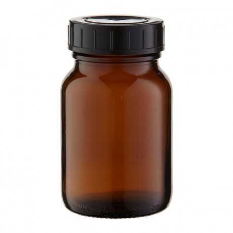 1 Braunglasflasche mit Weithalsöffnung und Deckel, 250ml